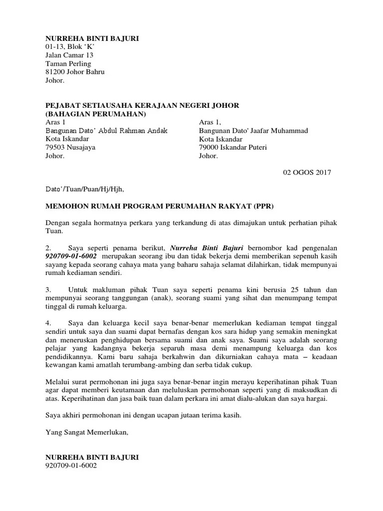 Ppr Contoh Surat Rayuan Permohonan Rumah Dbkl Wallpaper